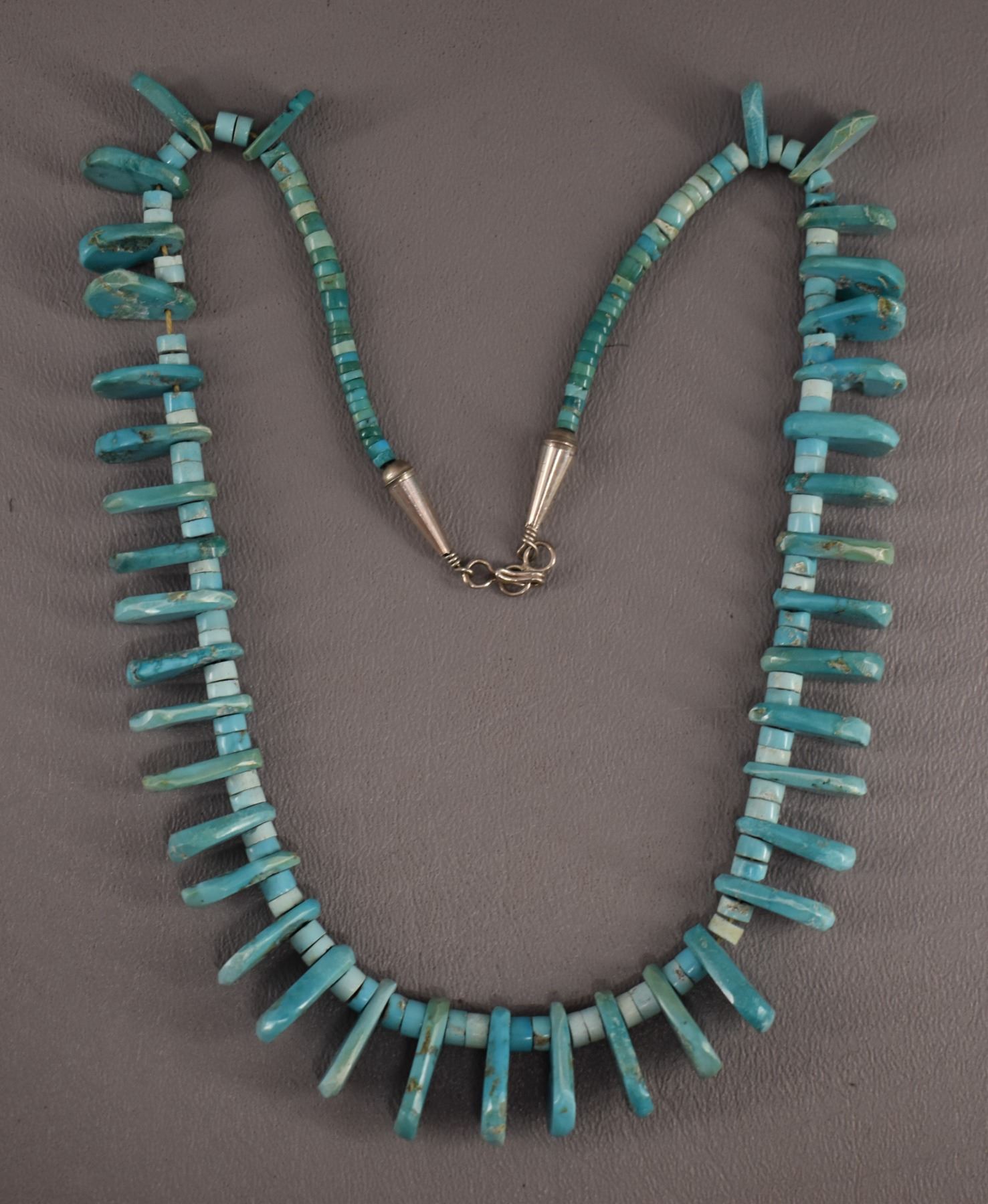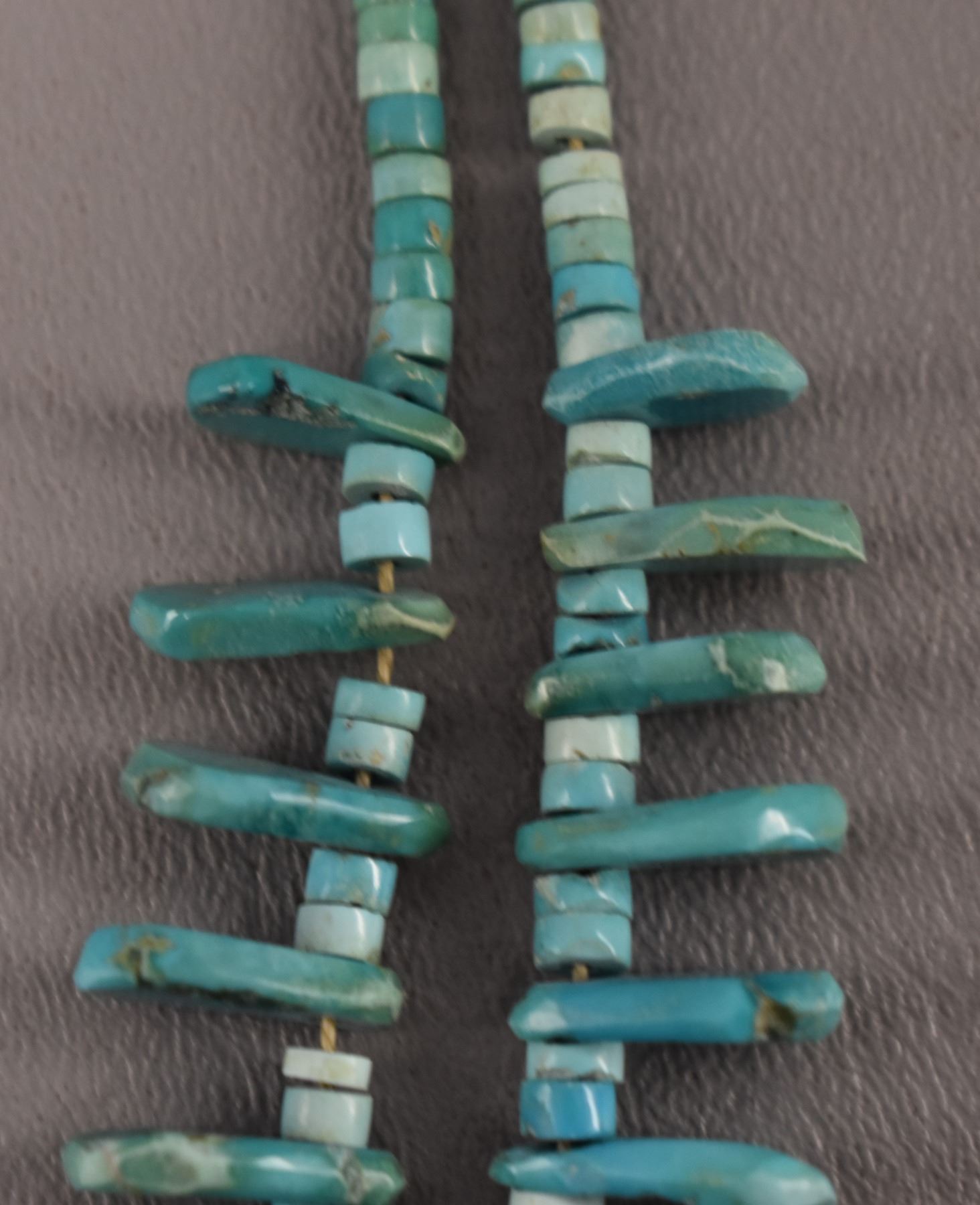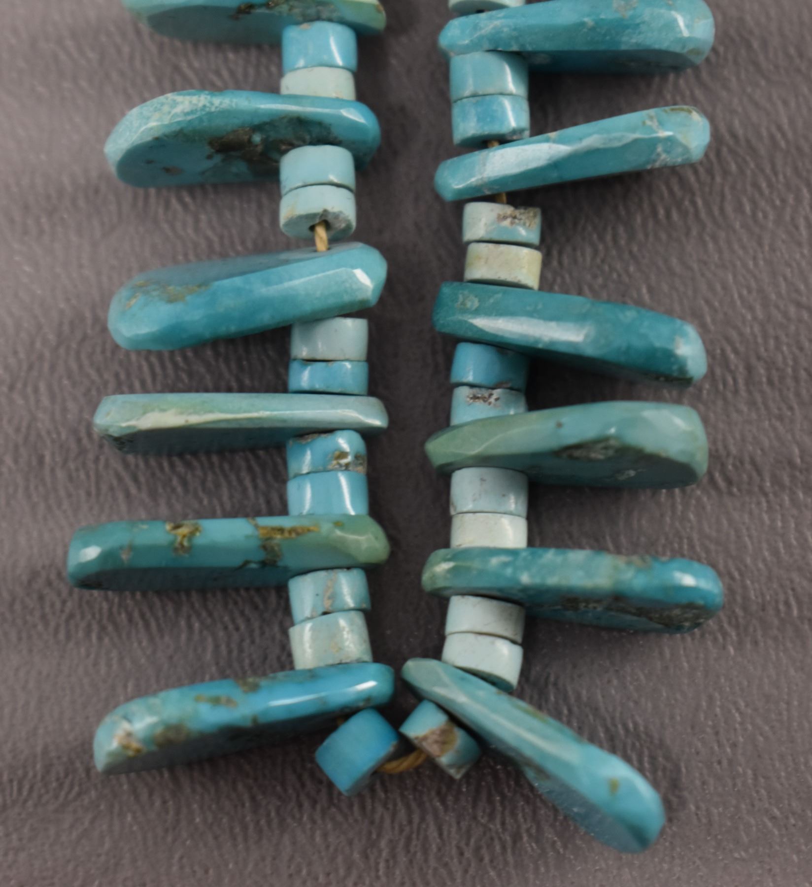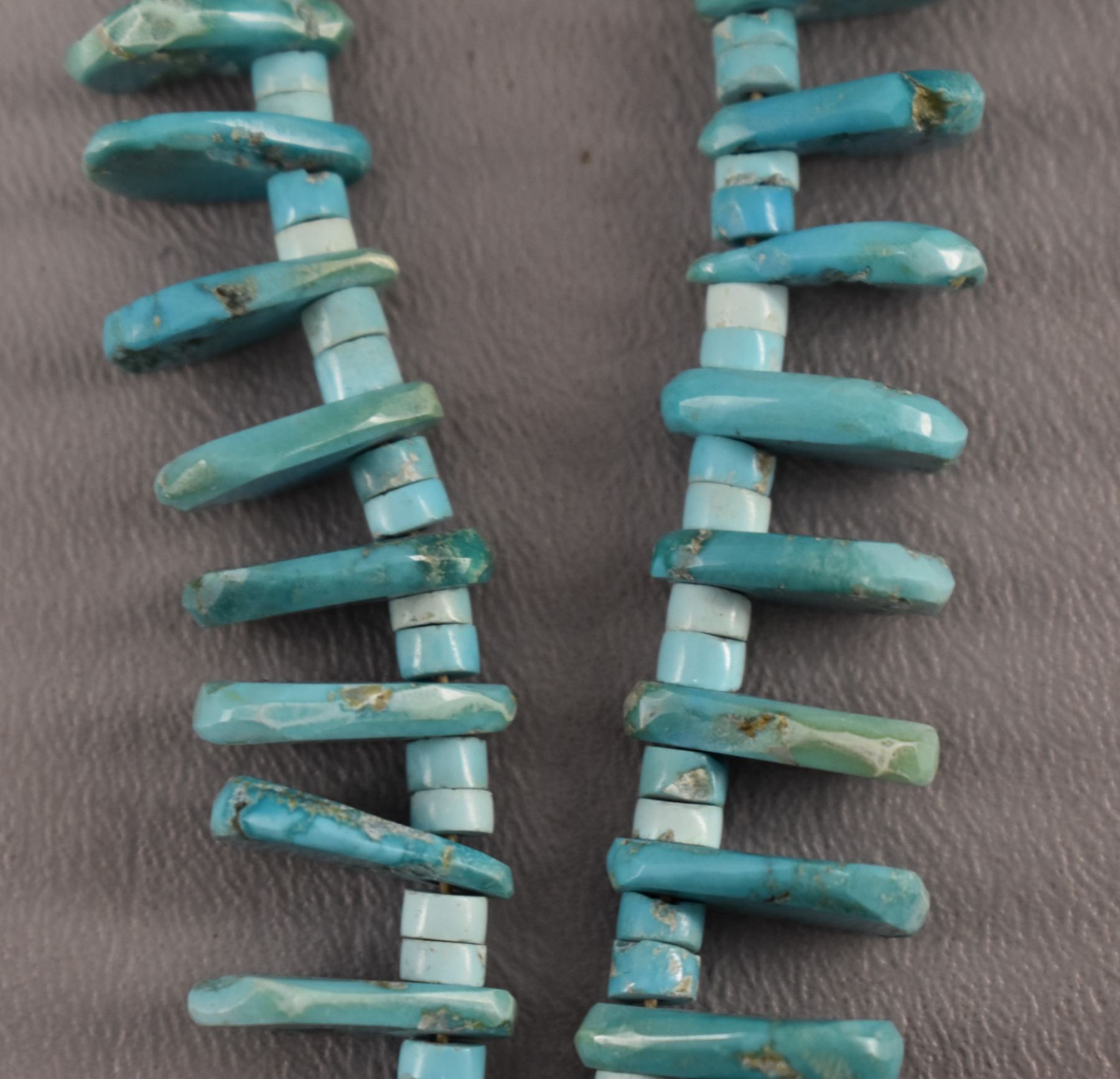 1980-90's santo Domingo Indian single strand of turquoise heishi with graduated turquoise tabs total length 18.5"