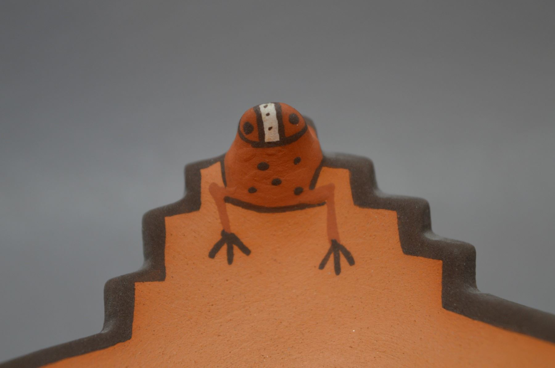 2012 zuni indian hand coiled and painted kiva b bowl design with raised frog's and painted tadpoles signed Agnes Peynetsa 1.5" x 4"