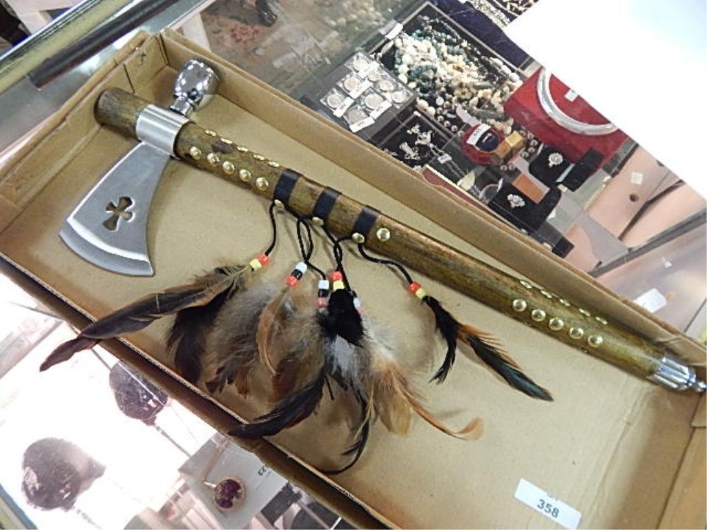 NATIVE AXE / PEACE PIPE WITH FEATHER TASSELS