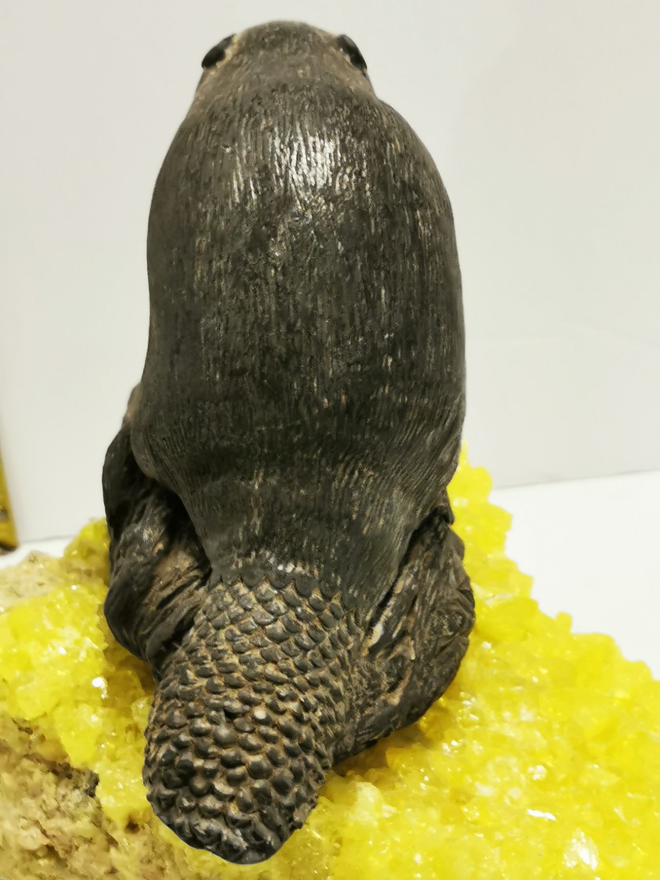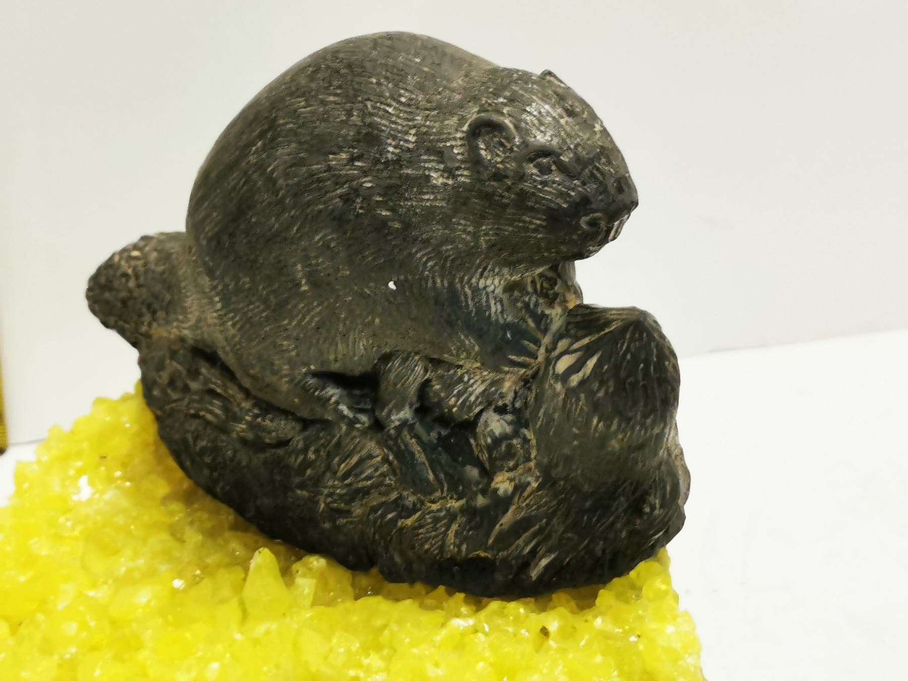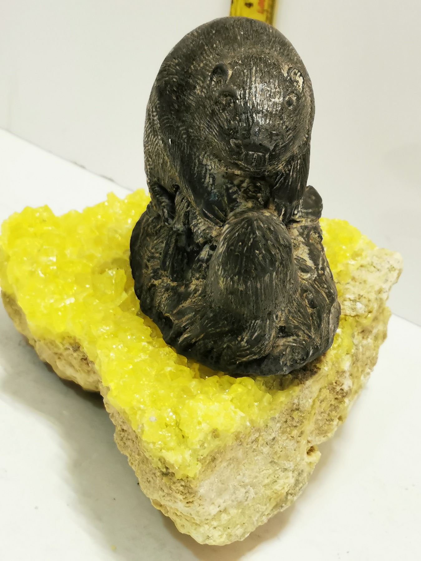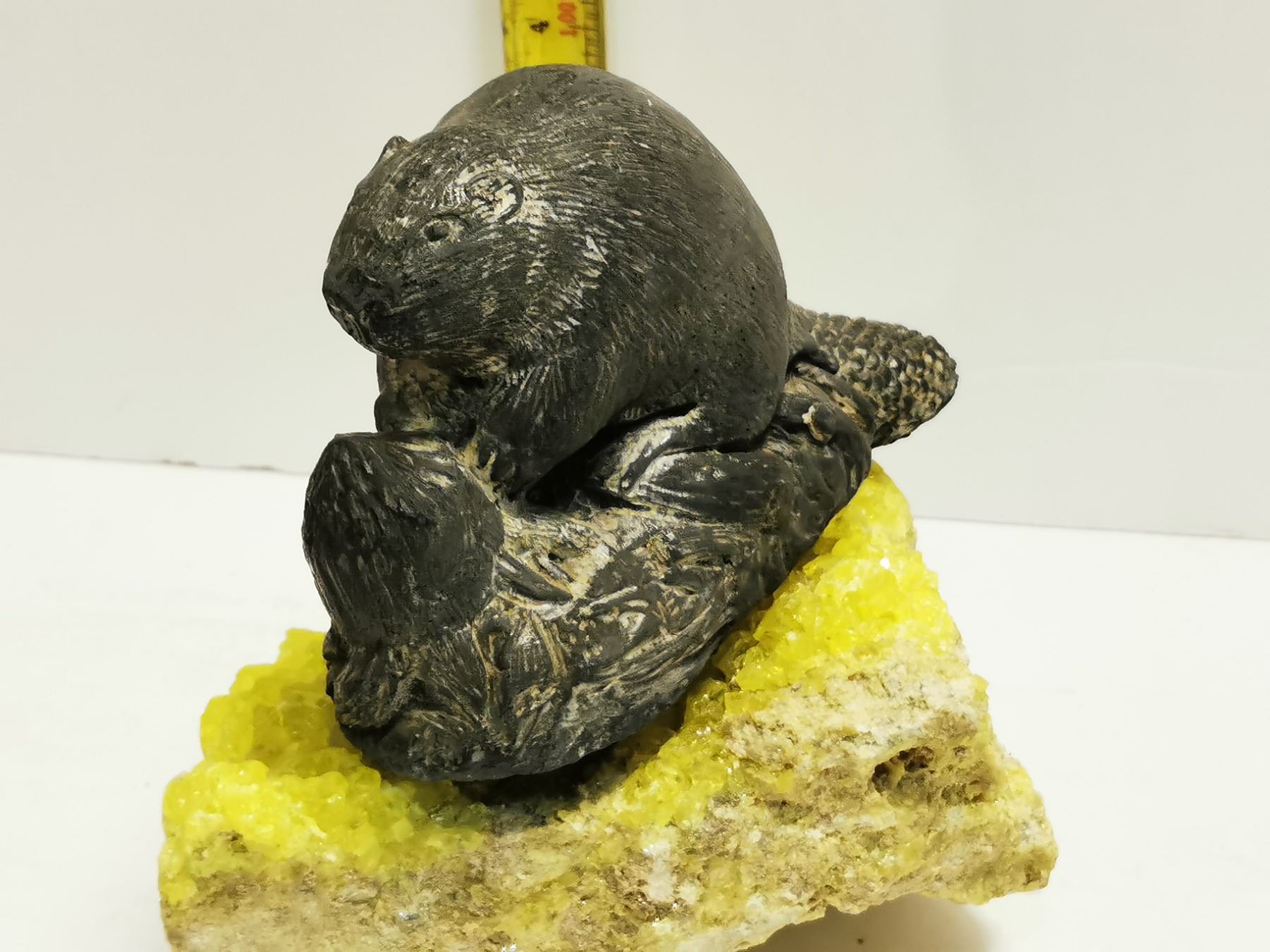 NATIVE BEAVER CARVING. WOLF ORIGINAL. MEAUSURES 5'X3.5". FROM AN ESTATE