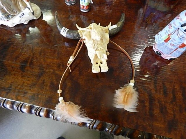 NATIVE BROWN CARVING OF HORNS - HORSE