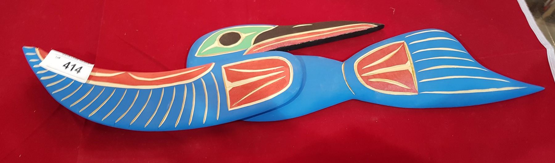 NATIVE CARVED HUMMINGBIRD PLAQUE SIGNED LAWRENCE ANDREW