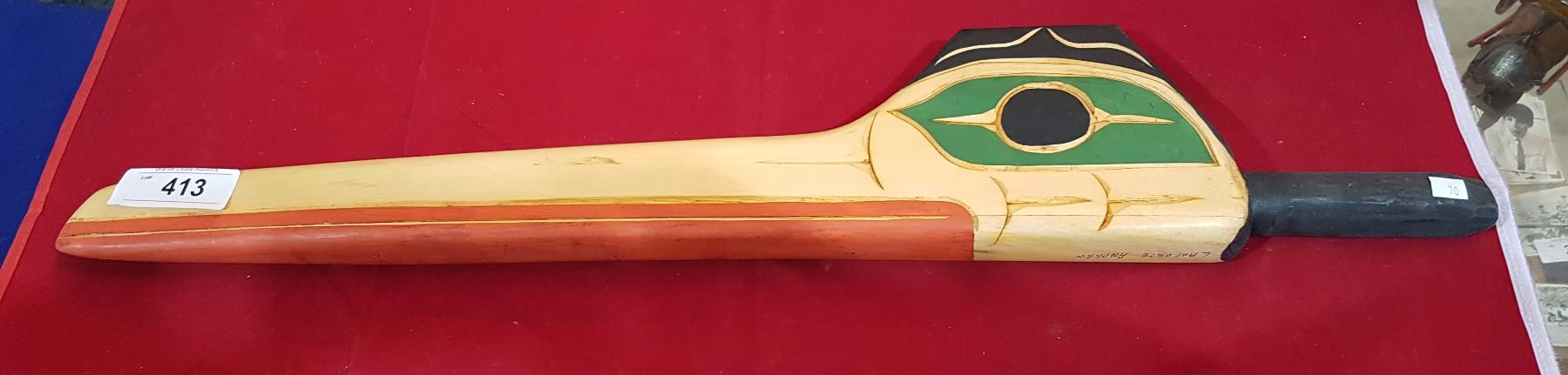 NATIVE CARVED LONG RATTLE SIGNED LAWRENCE ANDREW