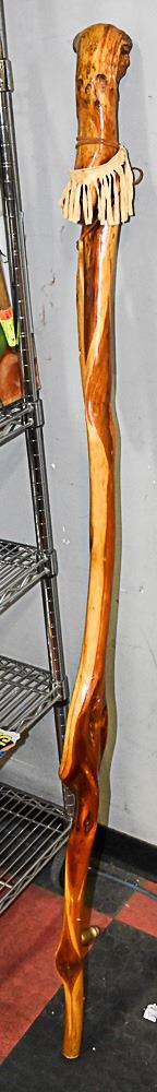 NATIVE CARVED WALKING STICK WITH METAL TIP