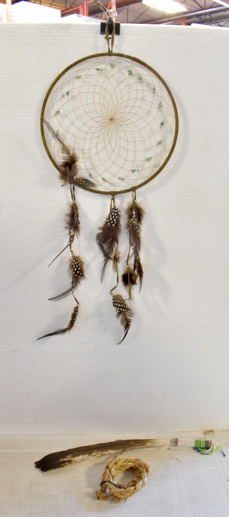 DREAM CATCHER, SWEET GRASS, BEADED FEATHER