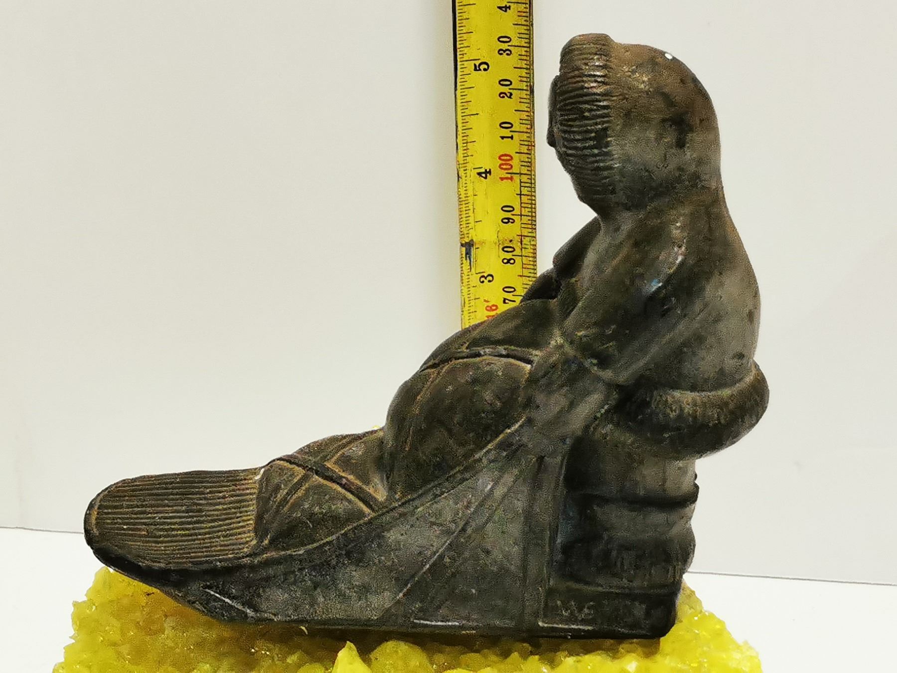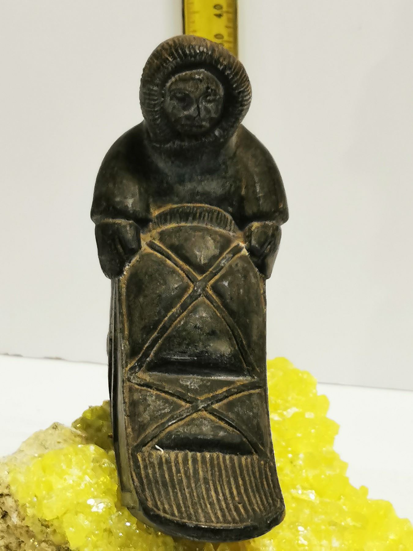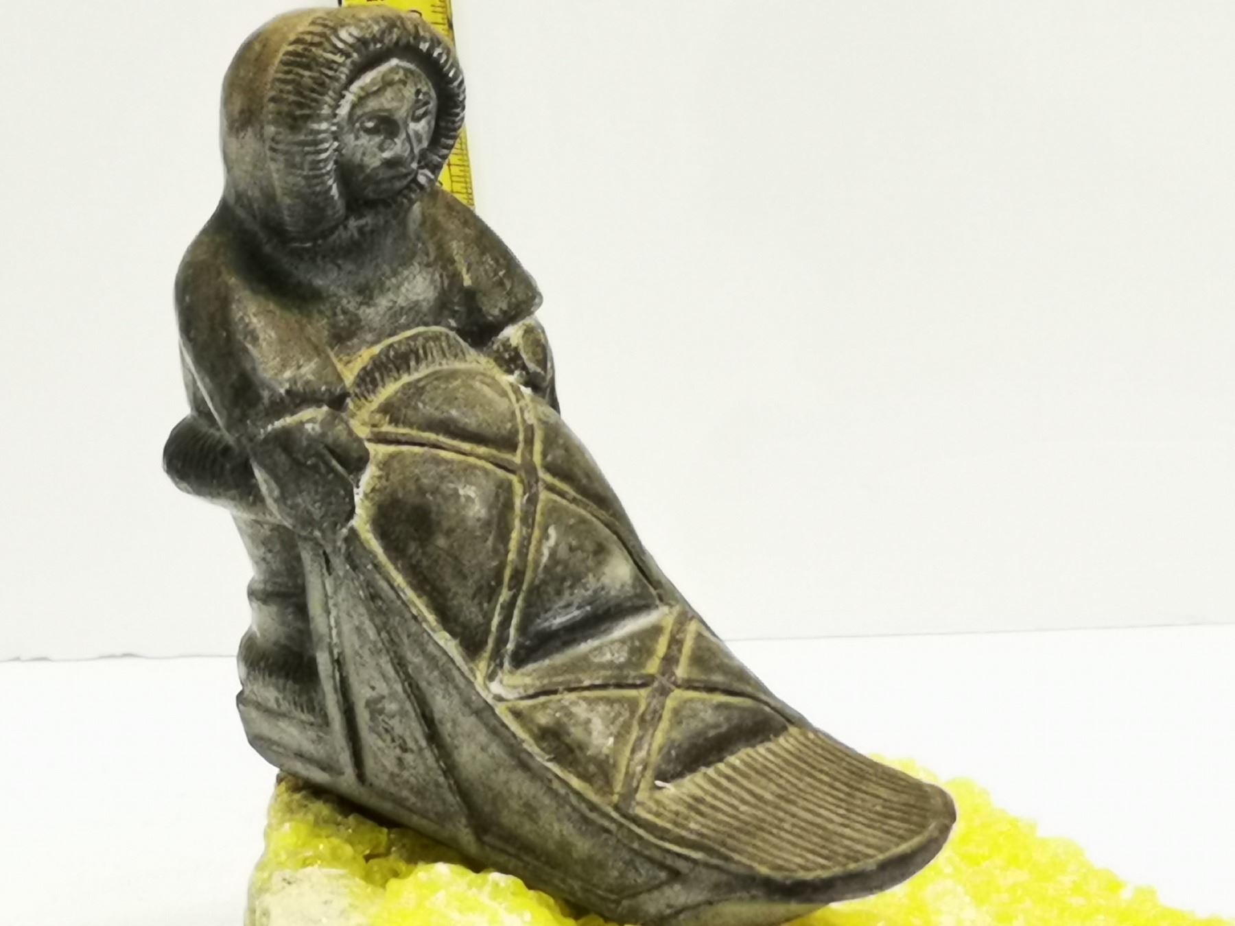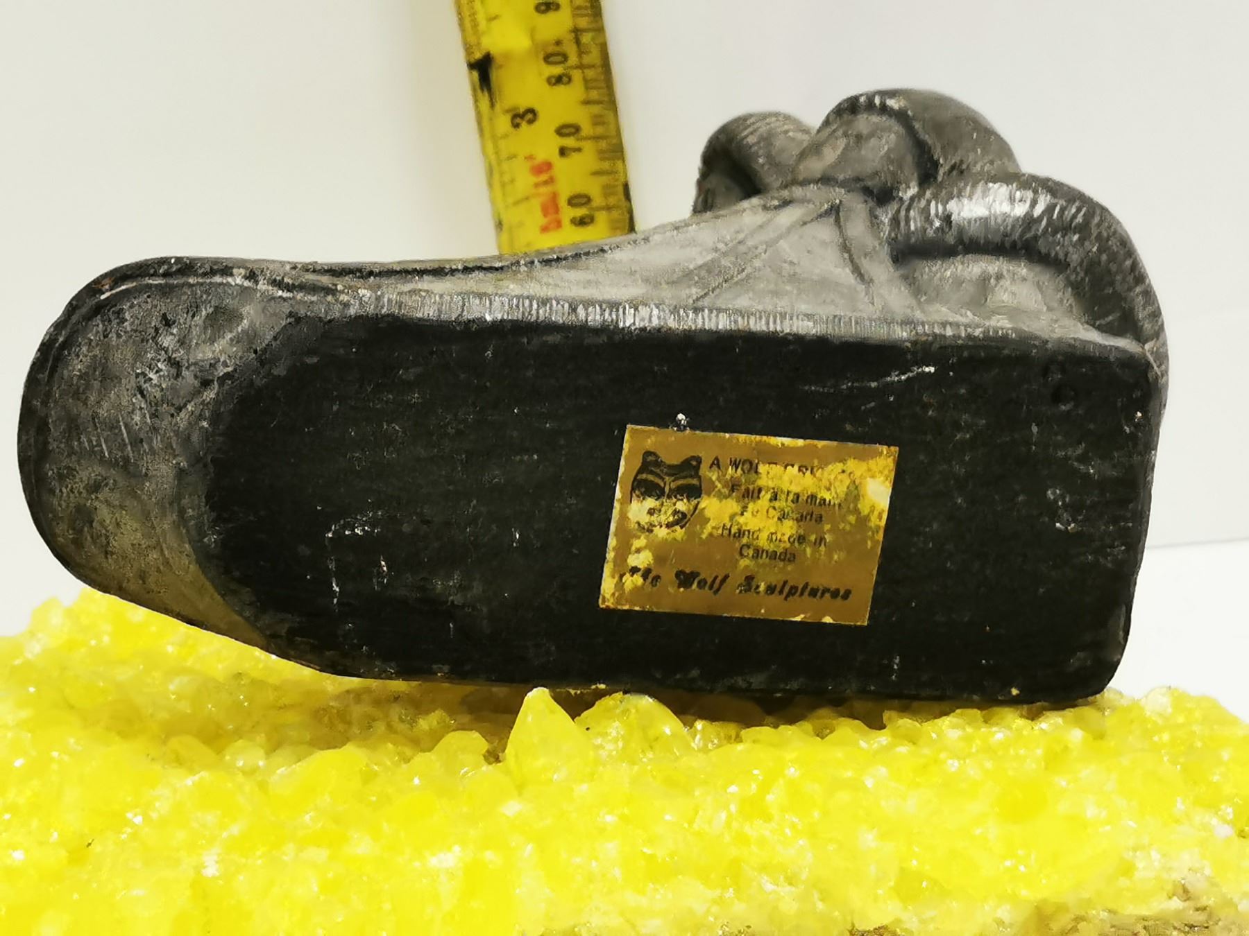 NARIVE ESKIMO ON SLED CARVING. WOLF ORIGINAL. MEASURES 5.75"X4.25". FROM AN ESTATE