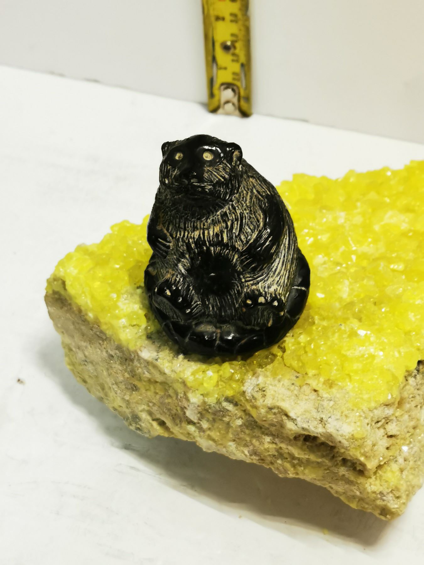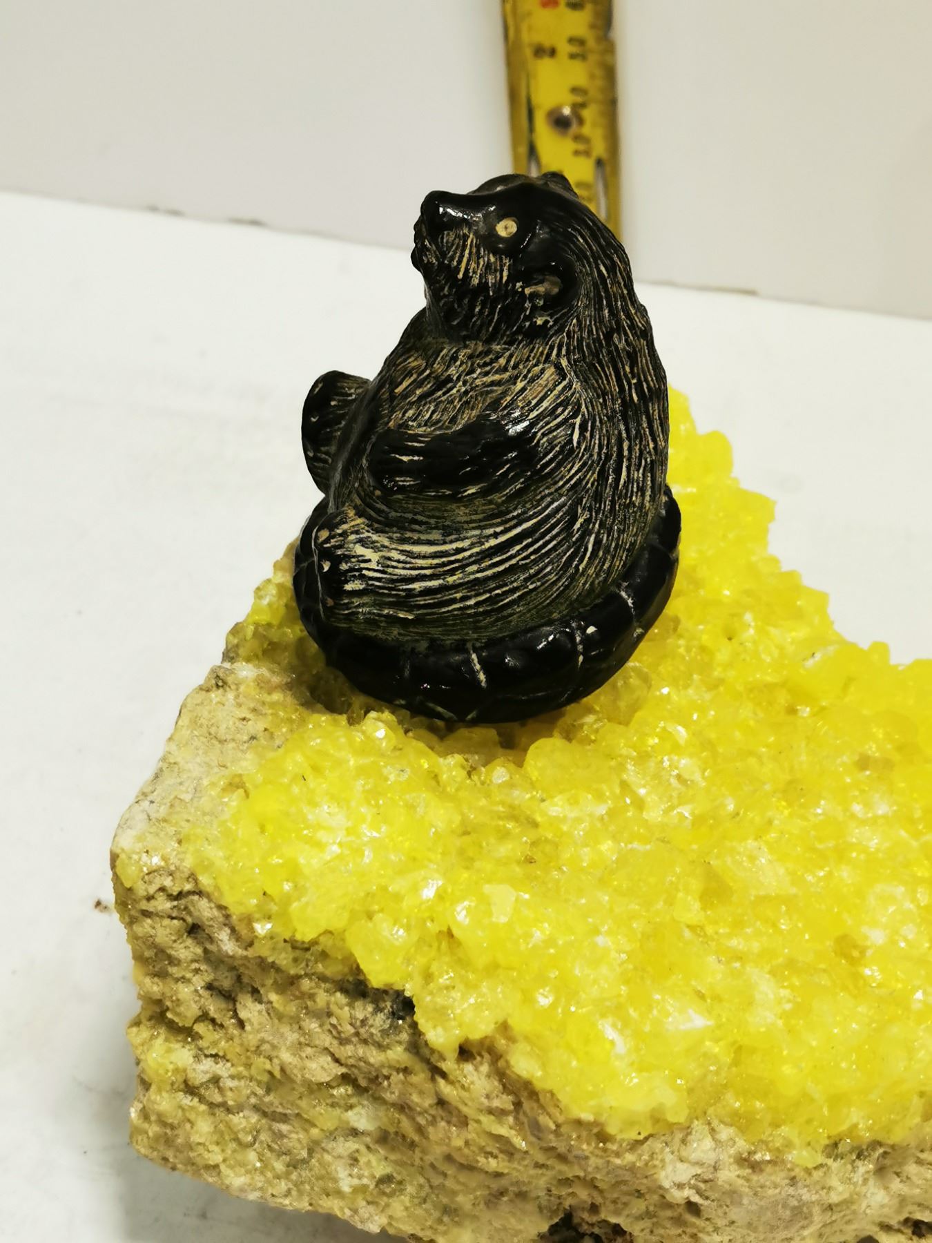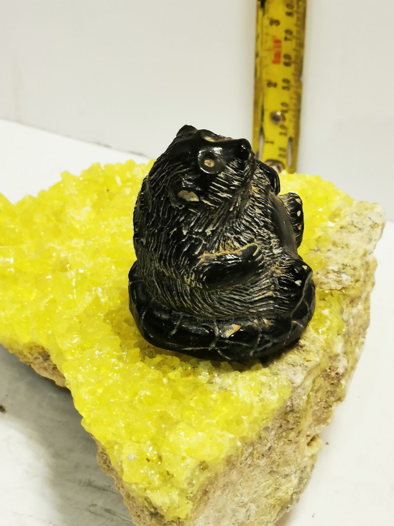 NATIVE MINIATURE BEAR CARVING. NO MARKINGS. LOOKS LIKE IT MIGHT BE A WOLF ORIGINAL. MEASURES 2"X2.5" FROM AN ESTATE.