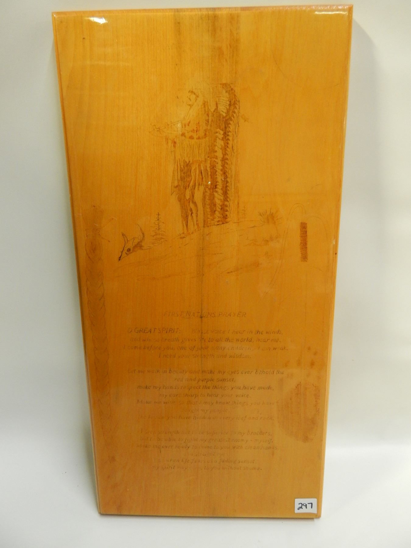 HAND CARVED NATIVE FIRST PRAYER PLAGUE-HARD TO READ BUT BEAUTIFUL/NOT SIGNED OR DATED