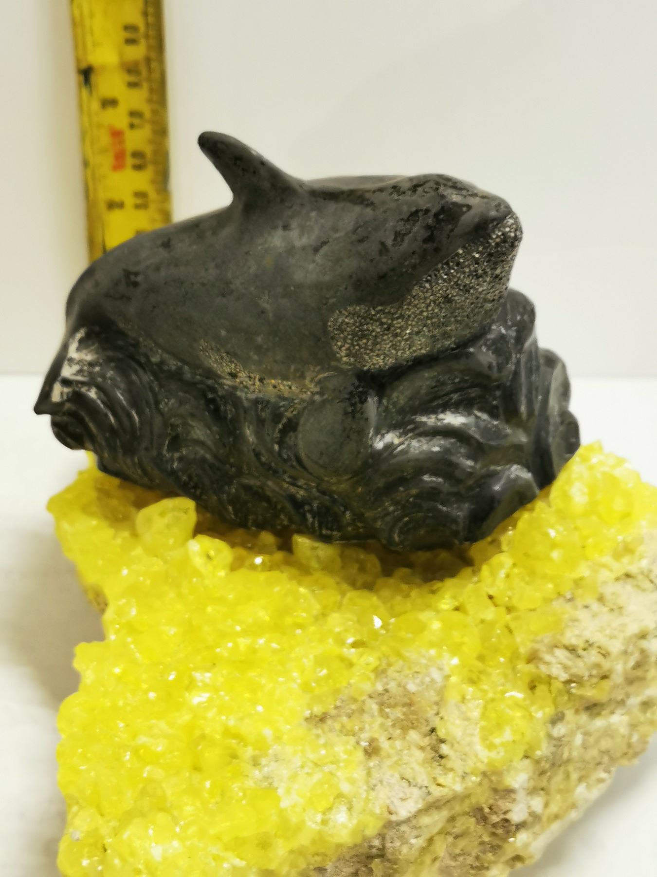 NATIVE WHALE CARVING. UNMARKED. FROM ESTATE. MEASURES 3.3 5/8"X3"