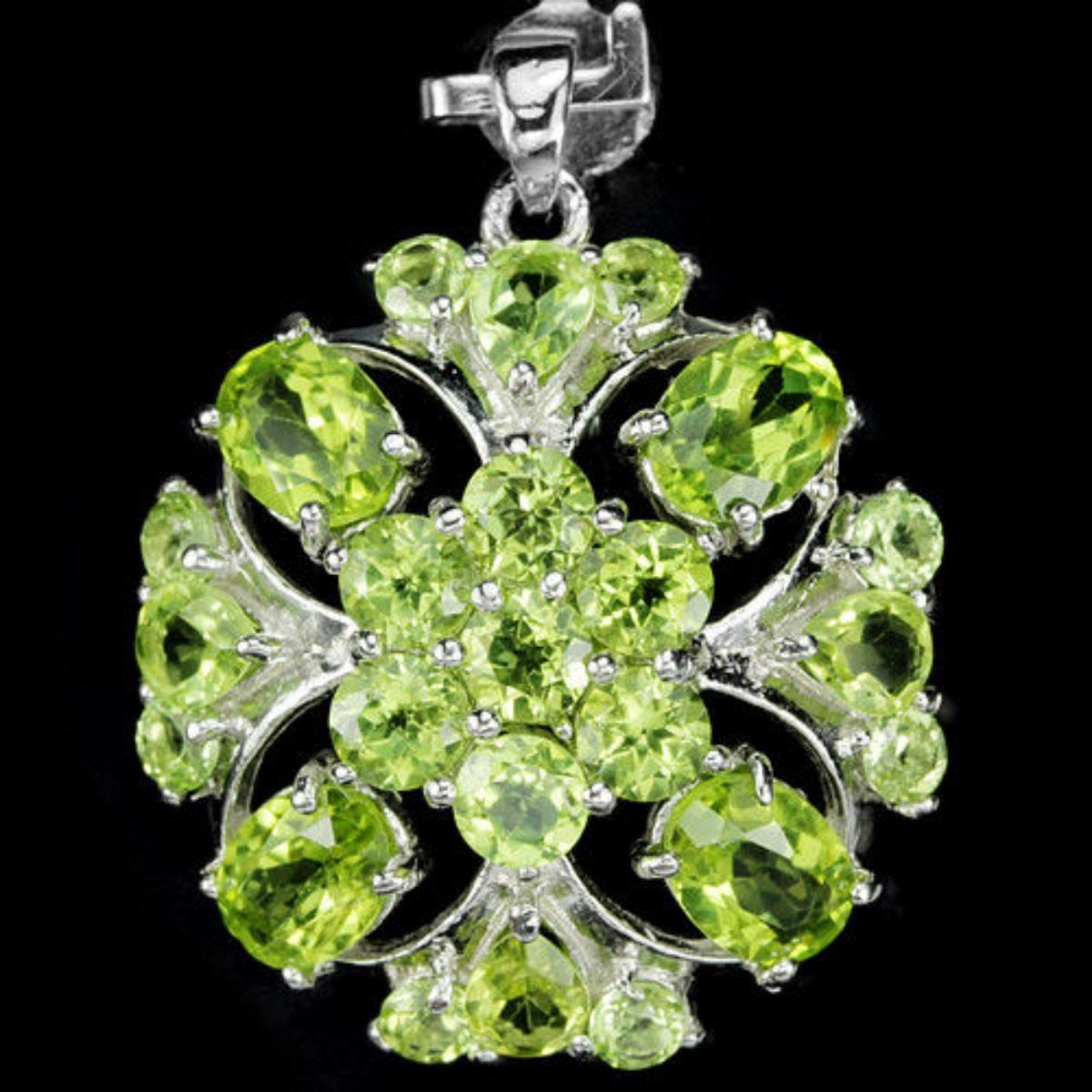 NATUARL APPLE GREEN PERIDOT 925 SILVER FLOWER PENDANT 14K WHITE GOLD COATING; STONE SHAPEMIXED SHAPESTONE DIMENSION7 X 5 MM. , 5 X 4 MM. , 4 MM. & 3 MM.ITEM WEIGHT5 GRAMCOLORAPPLE GREENCLARITYIF - VVSLUSTERDAZZLINGTREATMENTUNHEATEDORIGIN OF STONEASIAHARDNESS6.5FACE OF PENDANT 32 X 25 MM.