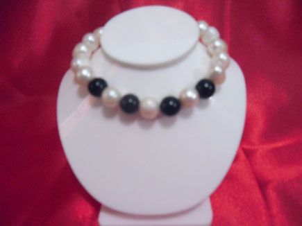 NATURA 50.00 CTW FRESHWATER WHITE PEARL & BLACK ONEX EL **|**|** NATURA 50.00 CTW FRESHWATER WHITE PEARL & BLACK ONEX ELASTIC BRACELET ; MSRP: $240