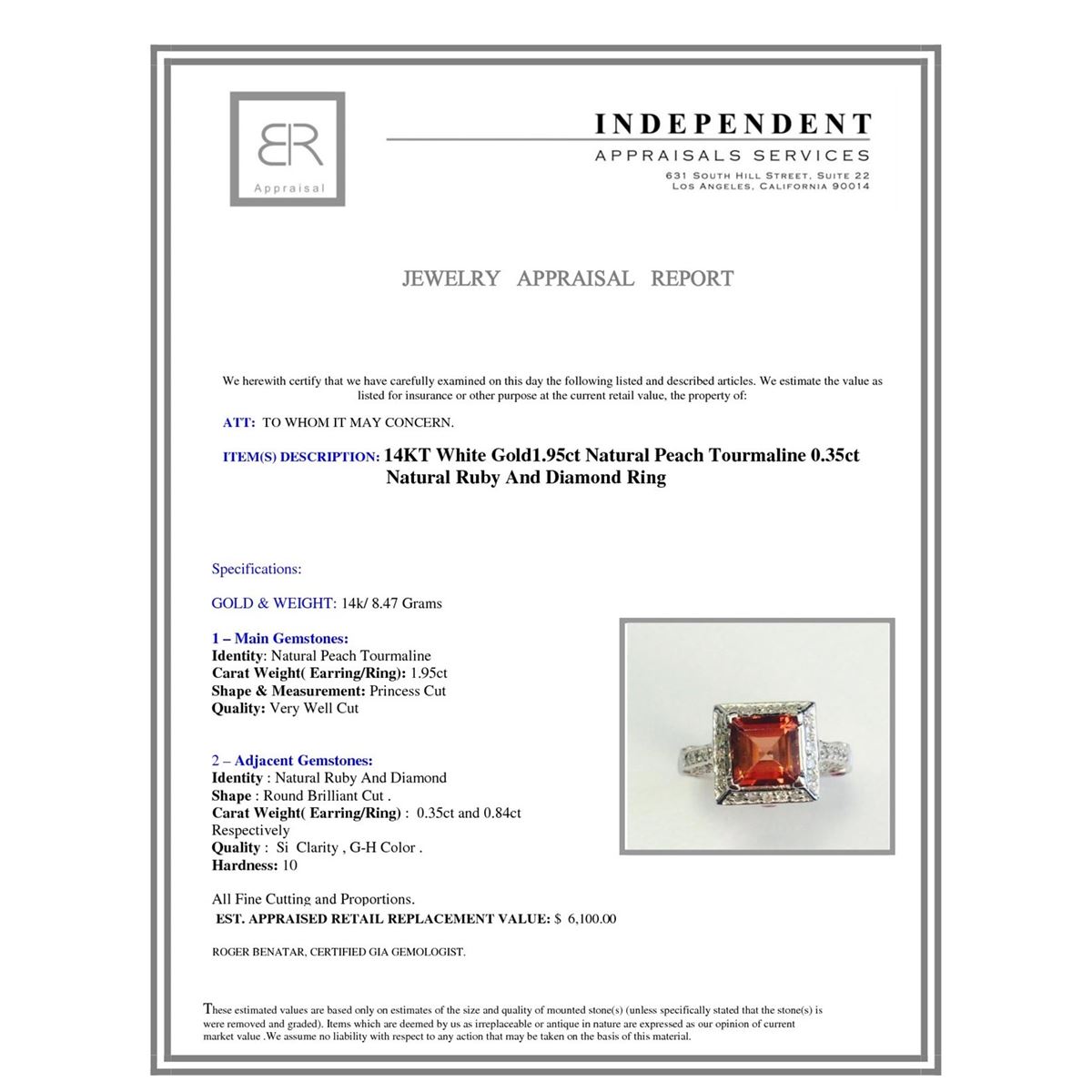 14K W/G NATURAL RUBY AND PEACH TOURMALINE RING: 8.47GRAM /RUBY: 0.35CT /DIA :0.84CT/ PEACH TOURMALINE :1.95CT/#GVR1332/ NO LEAD OR GLASS FILLING