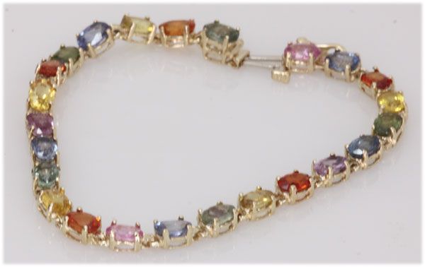 NATURAL 10.00 CTW MULTICOLOR BRACELET **|**|** NATURAL 10.00 CTW MULTICOLOR BRACELET; METAL GOLD; MAINSTONE MULTICOLOR; TOTAL COUNTED PIECES 24; TOTAL STONE WEIGHT 10.00 CTW; GOLD APPROX 7.5g; SIZE 7' LONG ; MSRP: $1500