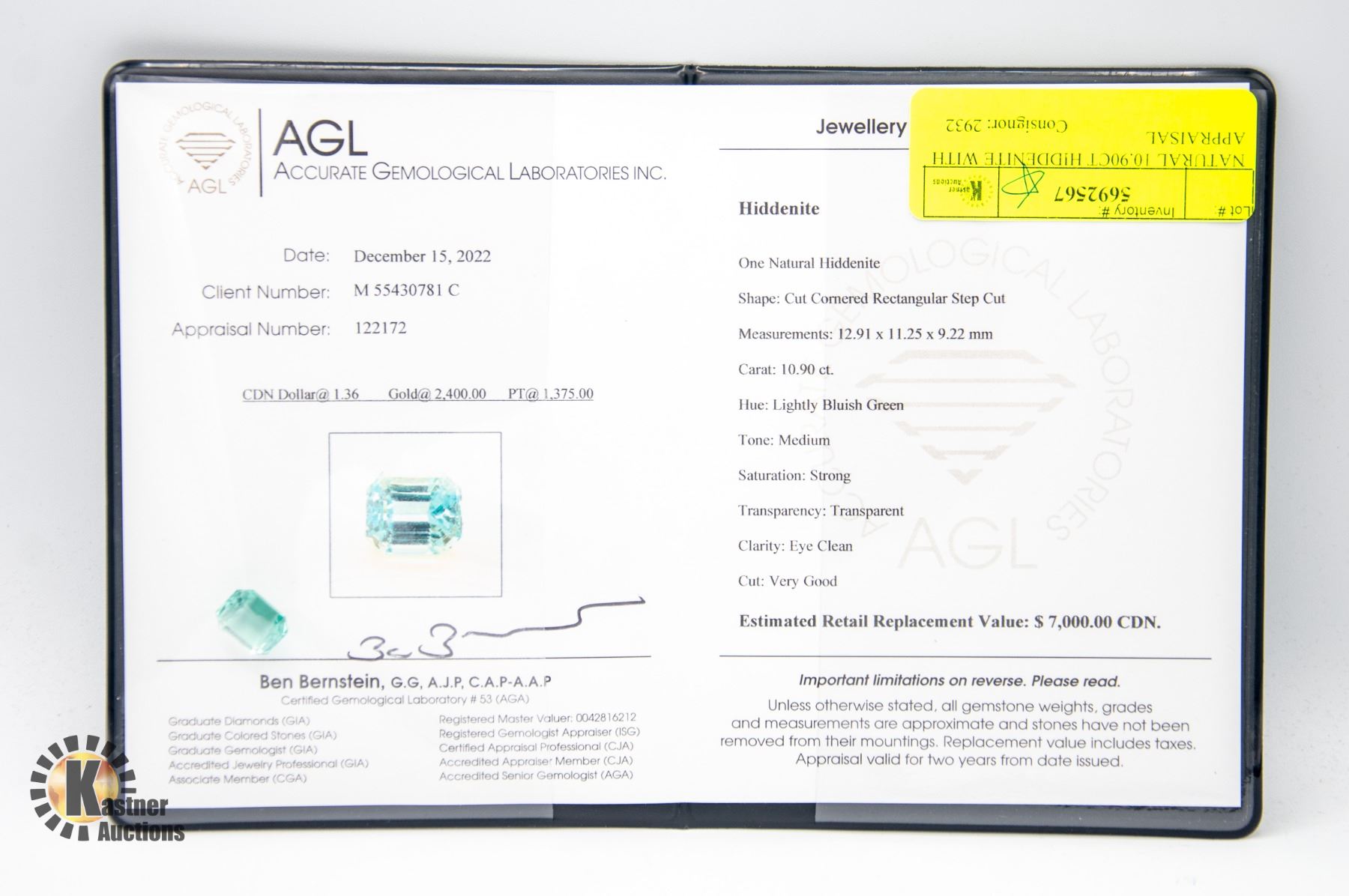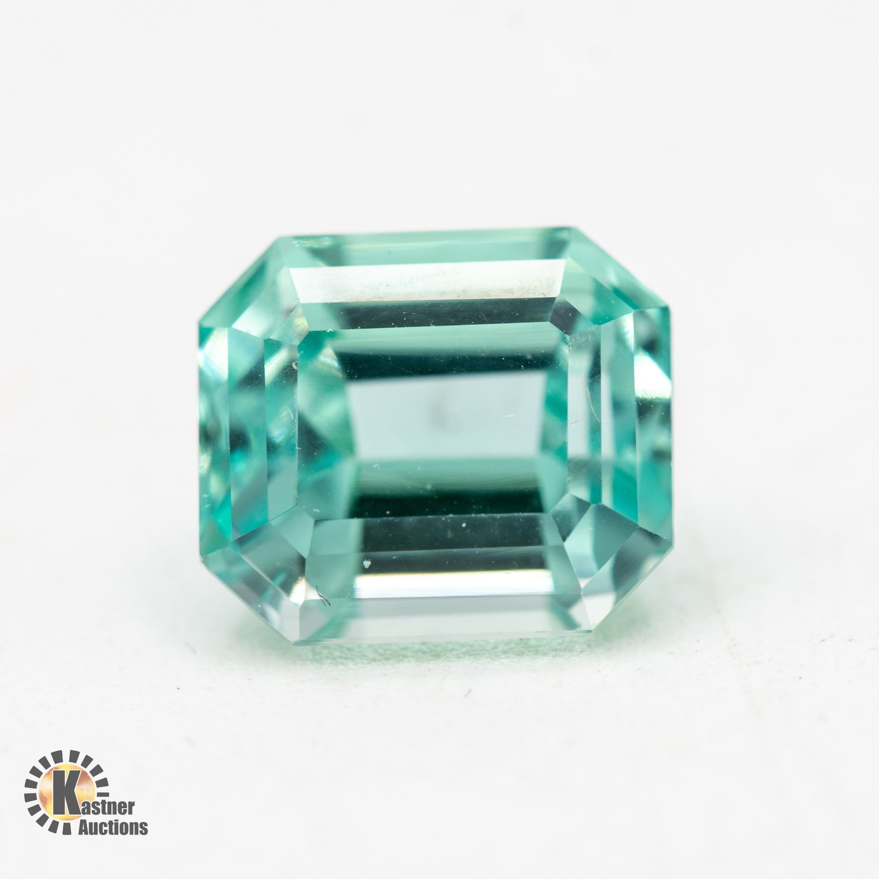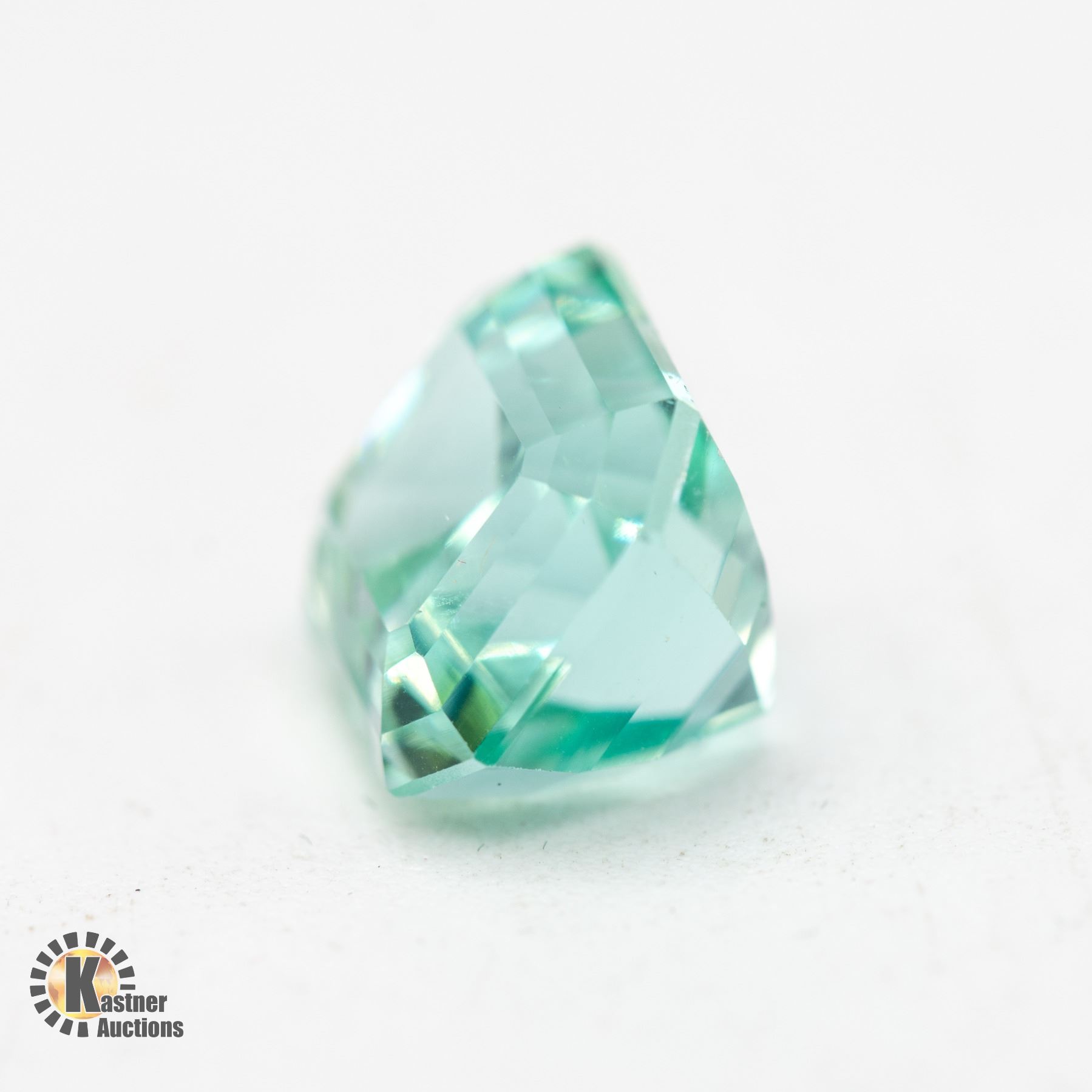 CUT CORNERED RECTANGULAR STEP CUT HIDDENITE MEASURING 12.91 X 11.25 X 9.22MM, LIGHTLY BLUISH GREEN HUE, TONE IS MEDIUM, SATURATION IS STRONG. THIS TRANSPARENT GEM HAS EYE CLEAN CLARITY, AND A VERY GOOD CUT. COMES WITH APPRAISAL FROM AGL (122172) AND IS APPRASIED AT $7,000 **ALL ITEMS MUST BE REMOVED BY 5PM SATURDAY, SEPTEMBER 9TH 2023. ALL REMAINING ITEMS WILL BE SUBJECT TO A $6.00 PER DAY STORAGE CHARGE. ANY ITEMS REMAINING AFTER MONDAY, SEPTEMBER 25TH, 2023 WILL BE CONSIDERED FORFEITED. NO REFUNDS WILL BE ISSUED FOR FORFEITED ITEMS. TO SCHEDULE A PICK UP APPOINTMENT CLICK HERE