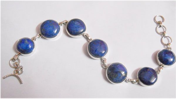 NATURAL 124.00 CTW LAPIS ROUND BRACELET .925 STERLING S **|**|** NATURAL 124.00 CTW LAPIS ROUND BRACELET .925 STERLING SILVER ; MSRP: $690