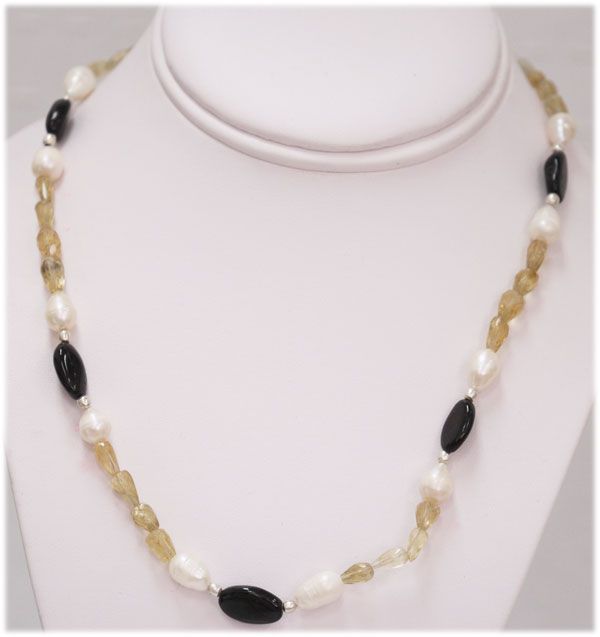 NATURAL 128.00 PEARL BLACK ONEX AND SEMI- PRECIOUS NECK **|**|** NATURAL 128.00 PEARL BLACK ONEX AND SEMI- PRECIOUS NECKLACE .925 STERLING SILVER ; MSRP: $390