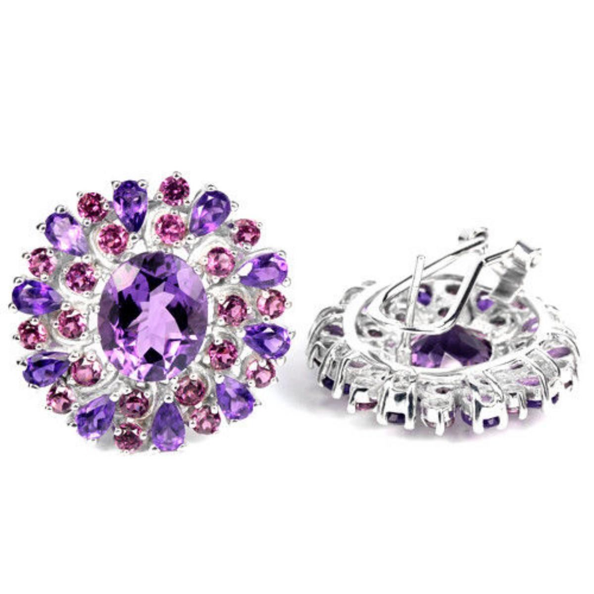 NATURAL AMETHYST & RHODOLITE GARNET 925 SILVER EARRING 14K WHITE GOLD COATING; STONE DIMENSION12 X 10 MM. , 5 X 3 MM. & 2.7 MM.ITEM WEIGHT14.6 GRAMCOLORPURPLE & PINK RASPBERRYCLARITYIF, VVS - VSLUSTERVIVACIOUSTREATMENTUNHEATEDORIGIN OF STONEBRAZIL & AFRICAHARDNESS7.0 - 7.5FACE OF EARRING 27 X 26 MM.