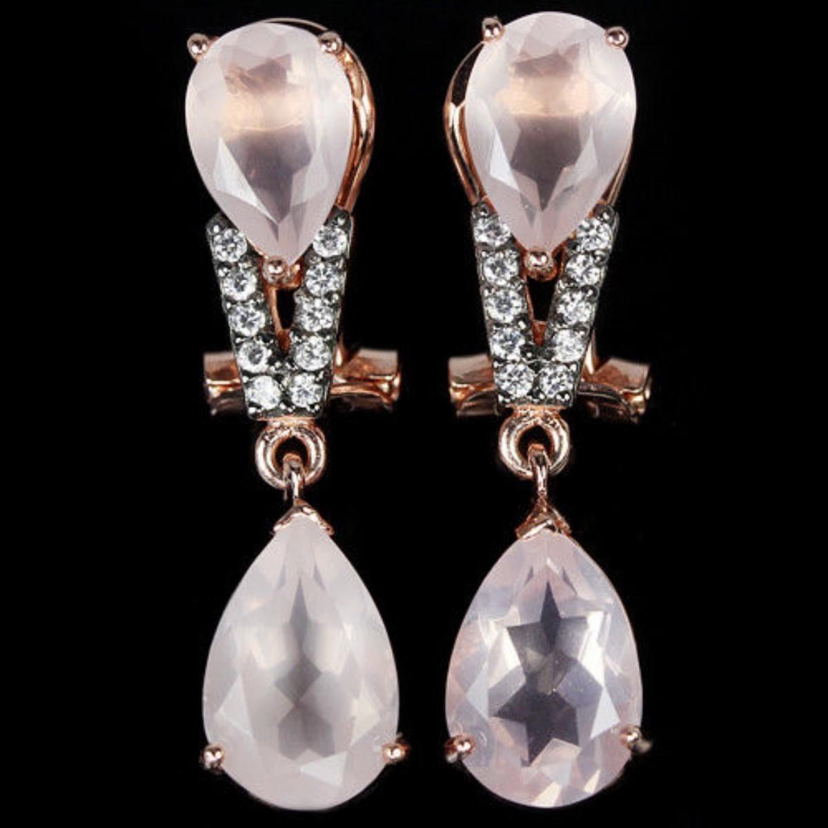 NATURAL AAA ROSE QUARTZ & WHITE CZ 925 SILVER EARRING 14K PIK GOLD COATING; STONE SHAPEPEAR PORTUGUESE CUTSTONE DIMENSION12 X 8 MM. & 10 X 7 MM.ITEM WEIGHT7.12 GRAMCOLORROSE PINKCLARITYTRANSLUCENTLUSTERALLURINGTREATMENTUNHEATEDORIGIN OF STONEBRAZILHARDNESS7.0OTHERFACE OF EARRING 33 X 8 MM. WHITE CUBIC ZIRCONIA 1.5 MM.
