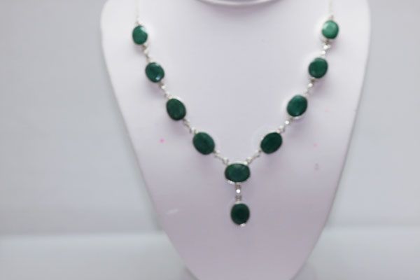 NATURAL 134.55 CTW EMERALD OVAL NECKLACE .925 STERLING  **|**|** NATURAL 134.55 CTW EMERALD OVAL NECKLACE .925 STERLING SILVER ; MSRP: $1200