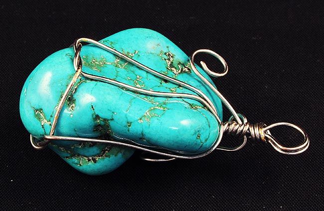 NATURAL 135.55CTW TURQUOISE WIRE WRAPPED PENDANT **|**|** TURQUOISE PENDANT IN MODERN DESIGN GEMSTONE SILVER WIRE WRAPPED JEWELRY MEASURING 39.00X30.83X21.22MM APPROX ; MSRP: $100