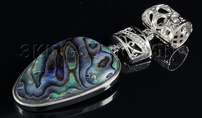 NATURAL 14.44GRAMS MOTHER OF PEARL SILVER PENDANT **|**|** 1.50X1.08 INCHES PEAR SHAPE MOONSTONE RAINBOW COLOR MOTHER OF PEARL SILVER PENDANT ; MSRP: $300