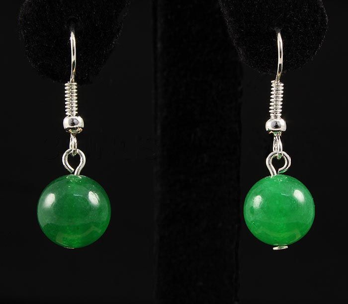 10MM ROUND JADE SILVER HOOK EARRING