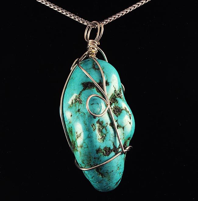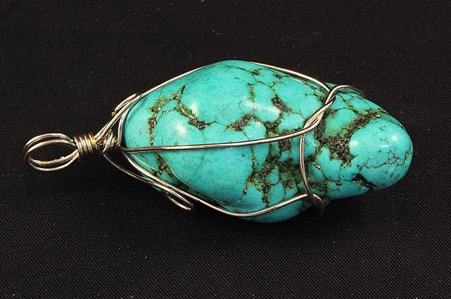 NATURAL 164.52CTW TURQUOISE WIRE WRAPPED PENDANT **|**|** TURQUOISE PENDANT IN MODERN DESIGN GEMSTONE SILVER WIRE WRAPPED JEWELRY MEASURING 46.30X24.70X21.90MM APPROX ; MSRP: $100