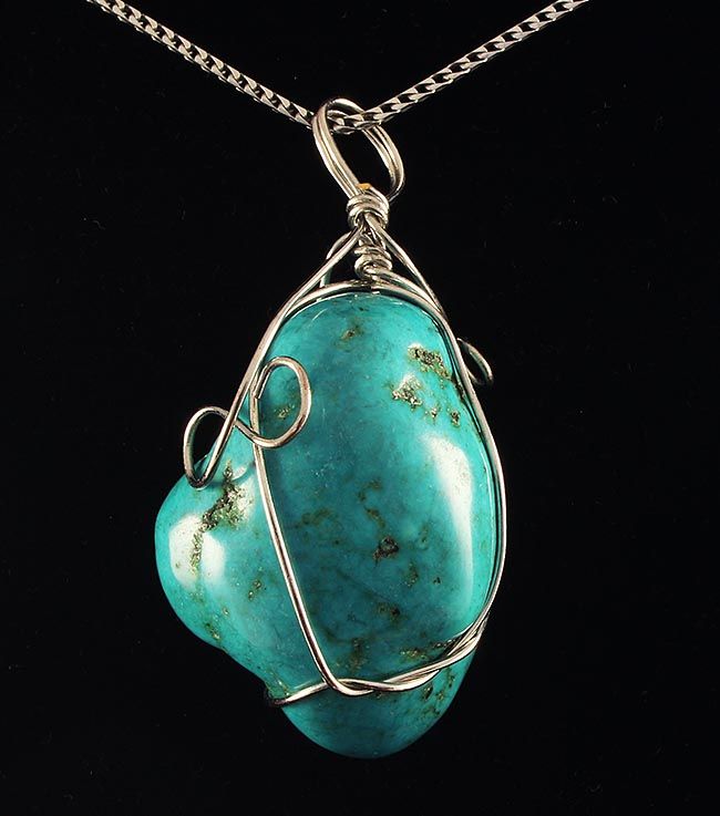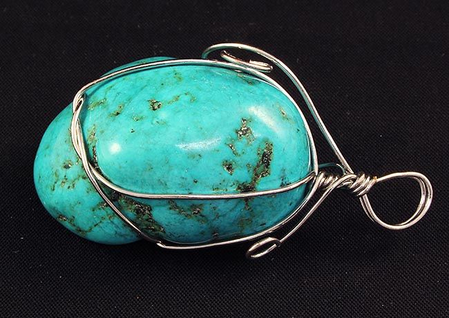 NATURAL 168.75CTW TURQUOISE WIRE WRAPPED PENDANT **|**|** TURQUOISE PENDANT IN MODERN DESIGN GEMSTONE SILVER WIRE WRAPPED JEWELRY MEASURING 39.15X28.95X28.54MM APPROX ; MSRP: $100