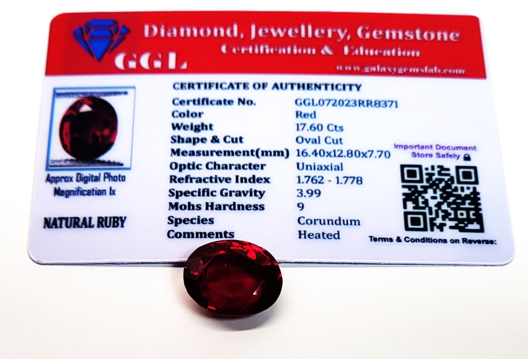 NATURAL 17.6 CT OVAL RUBY & COA, READY FOR