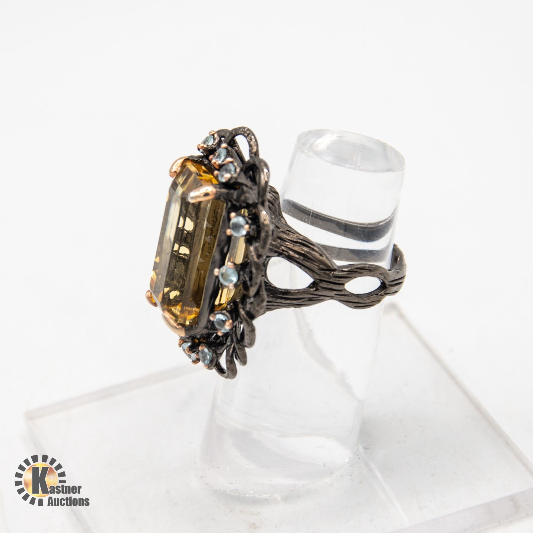 NATURAL 17CT CITRINE GEM .925 SILVER RING, SIZE 7
