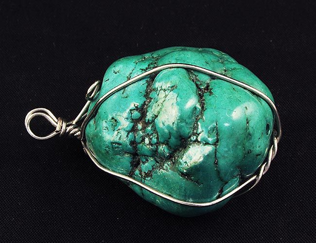 NATURAL 194.27CTW TURQUOISE WIRE WRAPPED PENDANT **|**|** TURQUOISE PENDANT IN MODERN DESIGN GEMSTONE SILVER WIRE WRAPPED JEWELRY MEASURING 37.20X33.70X28.93MM APPROX ; MSRP: $100
