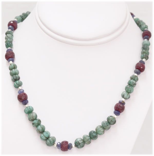 NATURAL 204.00 CTW EMERALD TANZANITE RUBY AND PEARL NEC **|**|** ; MSRP: $615