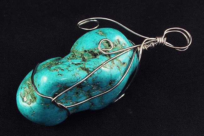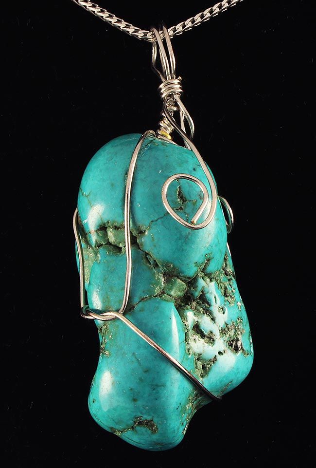 NATURAL 222.57CTW TURQUOISE WIRE WRAPPED PENDANT **|**|** TURQUOISE PENDANT IN MODERN DESIGN GEMSTONE SILVER WIRE WRAPPED JEWELRY MEASURING 50.70X25.41MM APPROX ; MSRP: $100