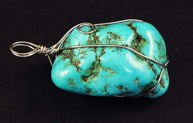 NATURAL 234.72CTW TURQUOISE WIRE WRAPPED PENDANT **|**|** TURQUOISE PENDANT IN MODERN DESIGN GEMSTONE SILVER WIRE WRAPPED JEWELRY MEASURING 42.27X32.20X23.06MM APPROX ; MSRP: $100