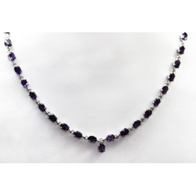 NATURAL 24.00 CTW AMETHYST NECKLACE .925 STERLING SILVE **|**|** NATURAL 24.00 CTW AMETHYST NECKLACE .925 STERLING SILVER; MAINSTONE AMETHYST 4X6 OVAL; 41 PIECES ; MSRP: $450