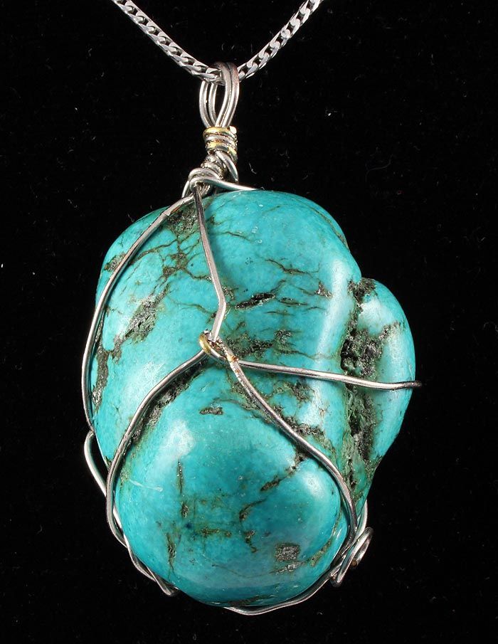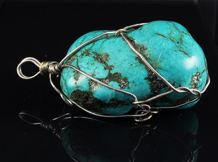 NATURAL 249.40CTW TURQUOISE WIRE WRAPPED PENDANT **|**|** TURQUOISE PENDANT IN MODERN DESING GEMSTONE SILVER WIRE WRAPPED JEWELRY MEASURING 1.65X1.40 INCHES ; MSRP: $300