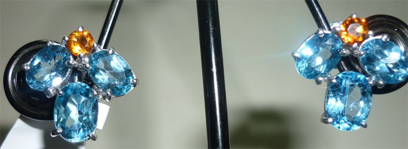 NATURAL 25.00 CTW BLUE TOPAZ AND CITRINE EARRING .925 S **|**|** NATURAL 25.00 CTW BLUE TOPAZ AND CITRINE EARRING .925 STERLING SILVER ; MSRP: $250