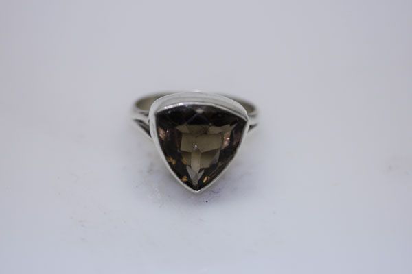 NATURAL 25.40 CTW SMOKY TOPAZ TRILLION CUT RING .925 ST **|**|** NATURAL 25.40 CTW SMOKY TOPAZ TRILLION CUT RING .925 STERLING SILVER ; MSRP: $250