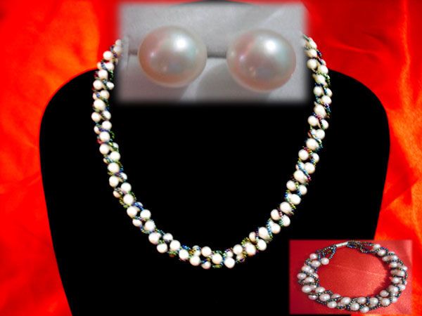 NATURAL 250 CTW FRESWATER EGG PEARLS AND SPIRAL BEADS S **|**|** NATURAL 250 CTW FRESWATER EGG PEARLS AND SPIRAL BEADS SET; MAINSTONE WHITE EGG PEARL ; NECKLACE SIZE 16inc; BRACELET SIZE 8in; TOTAL WEIGHT 250 CTW; LOCK MAGNETIC LOCK; WHITE STUD EARRINGS ; MSRP: $210
