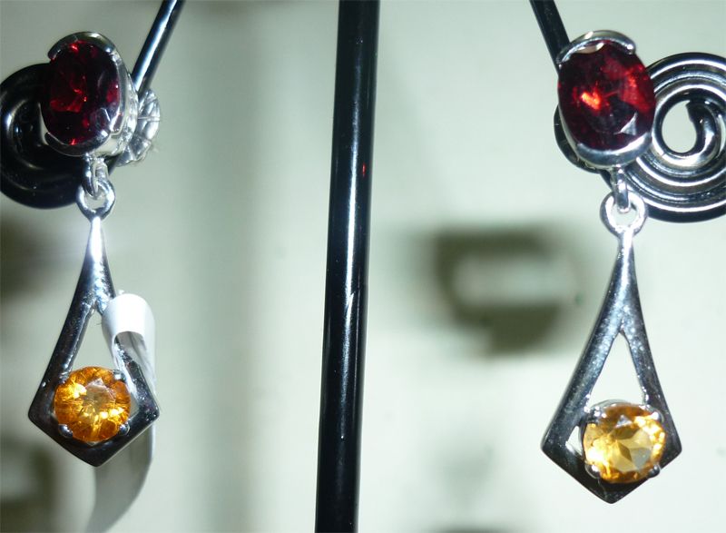 NATURAL 26.50 CTW GARNET AND CITRINE EARRING .925 STERL **|**|** NATURAL 26.50 CTW GARNET AND CITRINE EARRING .925 STERLING SILVER ; MSRP: $250