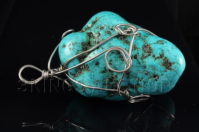 NATURAL 262.40CTW TURQUOISE WIRE WRAPPED PENDANT **|**|** TURQUOISE PENDANT IN MODERN DESIGN GEMSTONE SILVER WIRE WRAPPED JEWELRY MEASURING 1.75X1.31 INCHES ; MSRP: $300