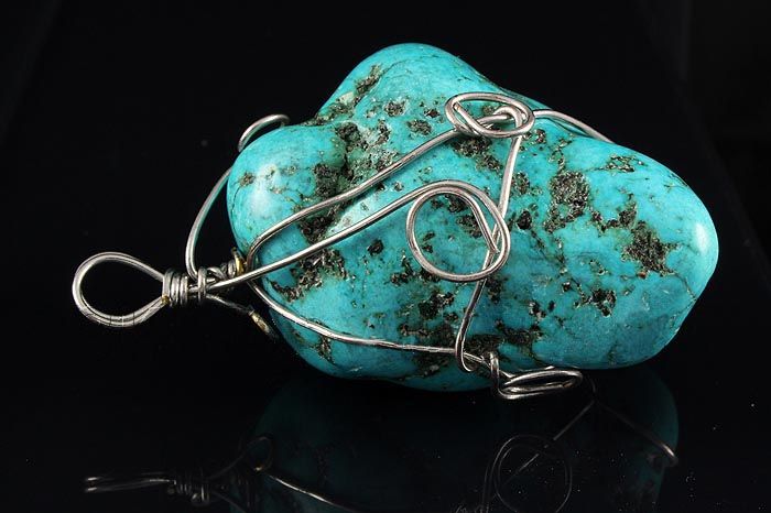 NATURAL 262.40CTW TURQUOISE WIRE WRAPPED PENDANT **|**|** TURQUOISE PENDANT IN MODERN DESIGN GEMSTONE SILVER WIRE WRAPPED JEWELRY MEASURING 1.75X1.31 INCHES ; MSRP: $100