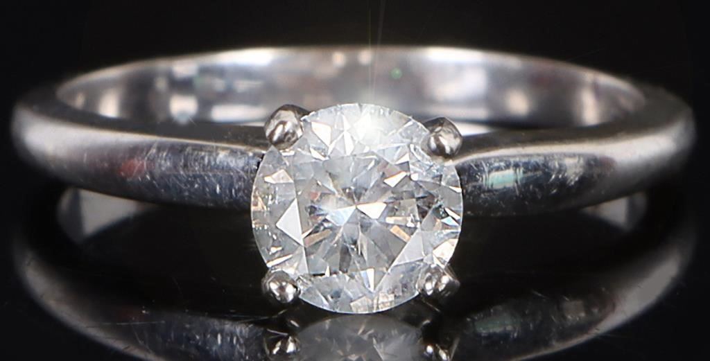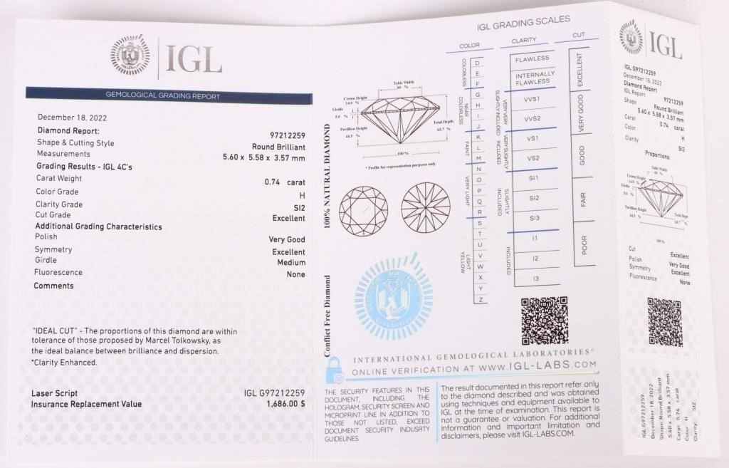 Natural 0.75 Carat Diamond 14 Karat White Gold Solitaire Wedding Ring. Comes with IGL Gemological Grading Report.