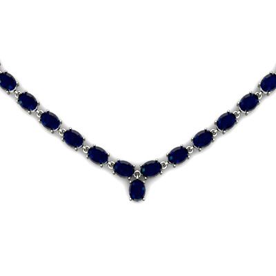 NATURAL 30.00 CTW SAPPHIRE NECKLACE .925 STERLING SILVE **|**|** NATURAL 30.00 CTW SAPPHIRE NECKLACE .925 STERLING SILVER;MAINSTONE SAPPHIRE 4X6 OVAL; 41 PIECES ; MSRP: $1500
