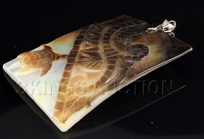 NATURAL 35.5CTW MOTHER OF PEARL SILVER PENDANT **|**|** 1.97X1.38 INCHES MOTHER OF PEARL WITH TURTLE HAND CARVED DESIGN SILVER PENDANT ; MSRP: $300