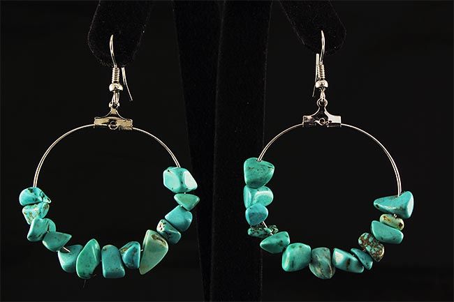 NATURAL 37.71CTW TURQUOISE HOOP SILVER EARRING **|**|** 2.38X1.55 IN DIAMETER HOOP EARRING WITH CHIPS BLUE TURQUOISE GEMSTONE ; MSRP: $100