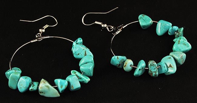 NATURAL 37.71CTW TURQUOISE HOOP SILVER EARRING **|**|** 2.38X1.55 IN DIAMETER HOOP EARRING WITH CHIPS BLUE TURQUOISE GEMSTONE ; MSRP: $100