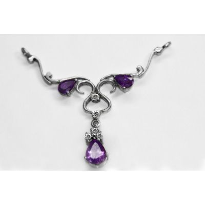 NATURAL 4.00g AMETHYST OVAL PENDANT .925 STERLING SILVE **|**|** NATURAL 4.00g AMETHYST OVAL PENDANT WITH DIAMOND .925 STERLING SILVER; DIAMOND WEIGHT ; MSRP: $300