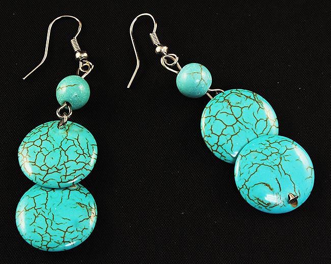 NATURAL 41.94CTW TURQUOISE DANGLING SILVER EARRING **|**|** 2.60 INCHES LONG DANGLING HOOK EARRING WITH ROUND 18MM BLUE TURQUOISE GEMSTONE ; MSRP: $100