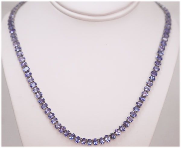 NATURAL 43.00 CTW TANZANITE OVAL NECKLACE 14 K GOLD **|**|** NATURAL 43.00 CTW TANZANITE OVAL NECKLACE; METAL GOLD; MAINSTONE TANZANITE; TOTAL COUNTED PIECES 96; TOTAL STONE WEIGHT 43.00 CTW; GOLD APPROX 22 g ; MSRP: $5500